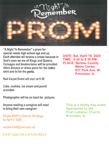 Please RSVP to Dianne Van Drew by April 4, 2020