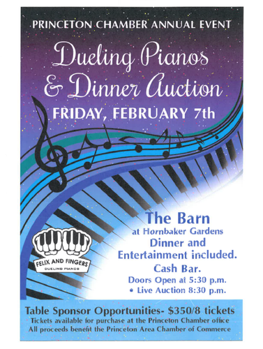 All proceeds benefit the Princeton Area Chamber of Commerce